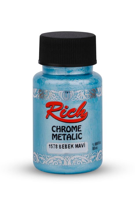 The Chrome Metallic series are water-based, odorless paints that leave pearlescent, metallic effects on unprocessed surfaces. Due to their viscous composition and high-pigment quality, it they ensure a clarity in 3-4 coats at an average. With their formula content ready for direct use and color variety in line with the fashion, they are suitable for any hobby and artistic works. It is recommended that the application surface is protected with a high gloss varnish. Along with its rich color range of 42 colors, they are available in packs of 50 cc. It complies with CE and EN71 norms.