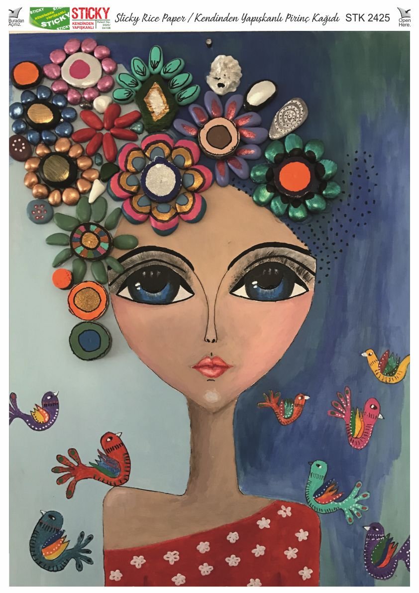 Scky Rice Paper (Self-Adhesive Rice Paper) It is printed on textured and thin paper that made from rice straw and is used for decoupage works. With its selfadhesive feature, it does not require glue. You can easily paste it on the area you want and apply painng, relief, foil and varnish on it. You can visit our web page for other Scky models