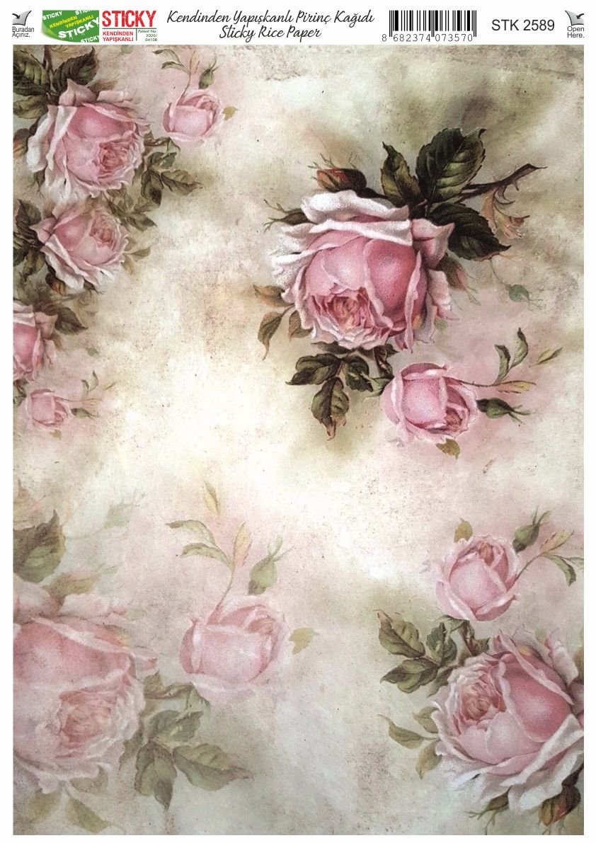 Scky Rice Paper (Self-Adhesive Rice Paper) It is printed on textured and thin paper that made from rice straw and is used for decoupage works. With its selfadhesive feature, it does not require glue. You can easily paste it on the area you want and apply painng, relief, foil and varnish on it. You can visit our web page for other Scky models