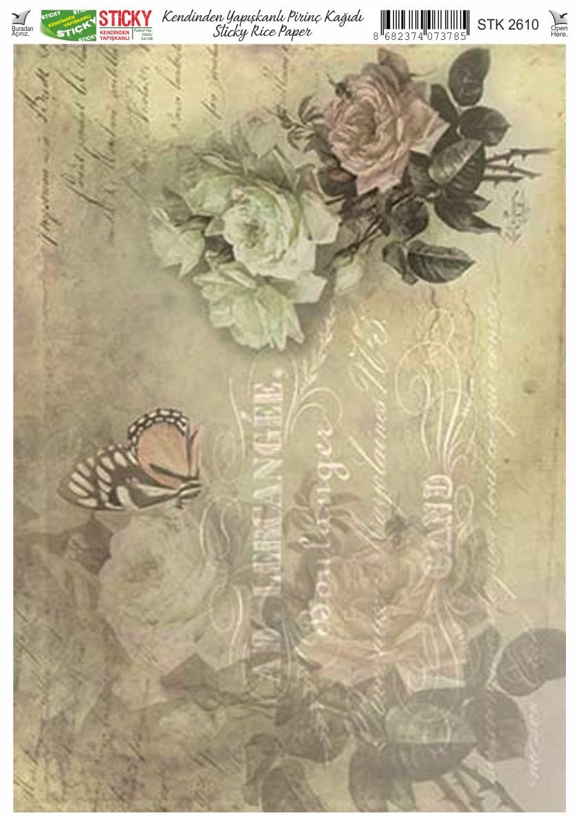 Scky Rice Paper (Self-Adhesive Rice Paper) It is printed on textured and thin paper that made from rice straw and is used for decoupage works. With its selfadhesive feature, it does not require glue. You can easily paste it on the area you want and apply painng, relief, foil and varnish on it. You can visit our web page for other Scky models