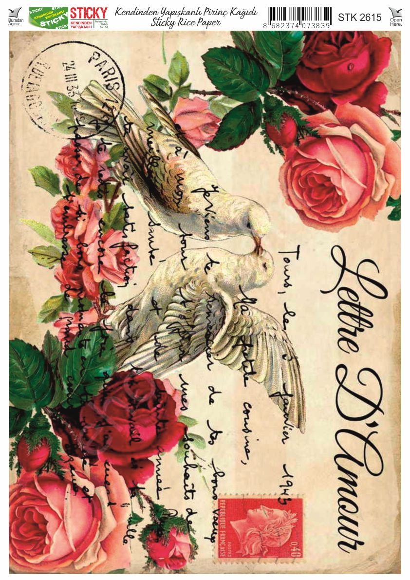 Scky Rice Paper (Self-Adhesive Rice Paper) It is printed on textured and thin paper that made from rice straw and is used for decoupage works. With its selfadhesive feature, it does not require glue. You can easily paste it on the area you want and apply painng, relief, foil and varnish on it. You can visit our web page for other Scky models