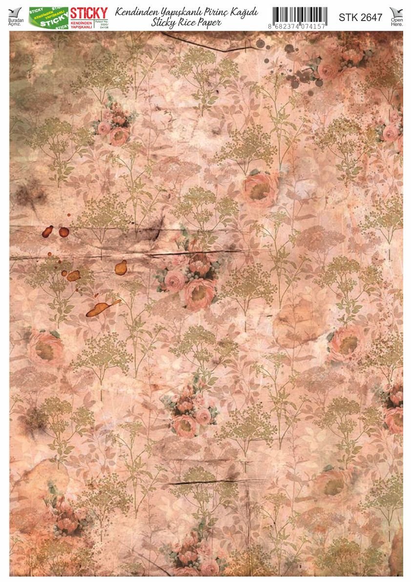 Scky Rice Paper (Self-Adhesive Rice Paper) It is printed on textured and thin paper that made from rice straw and is used for decoupage works. With its selfadhesive feature, it does not require glue. You can easily paste it on the area you want and apply painng, relief, foil and varnish on it. You can visit our web page for other Scky models