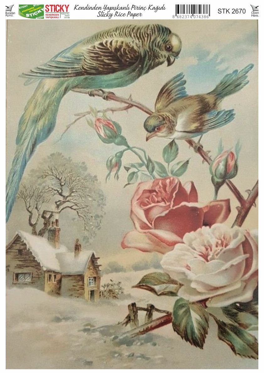 Scky Rice Paper (Self-Adhesive Rice Paper) It is printed on textured and thin paper that made from rice straw and is used for decoupage works. With its selfadhesive feature, it does not require glue. You can easily paste it on the area you want and apply painng, relief, foil and varnish on it. You can visit our web page for other Scky models