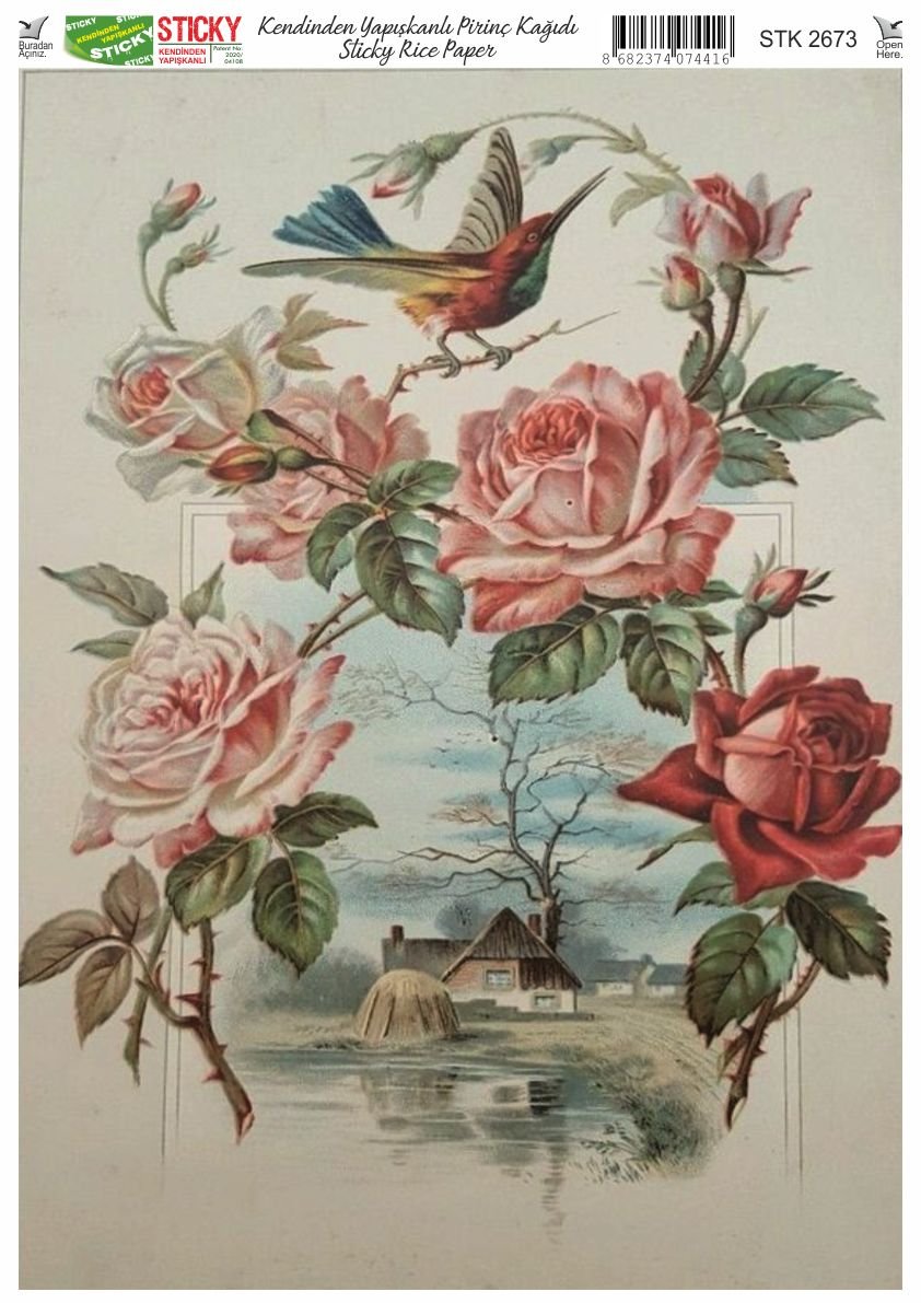 Scky Rice Paper (Self-Adhesive Rice Paper) It is printed on textured and thin paper that made from rice straw and is used for decoupage works. With its selfadhesive feature, it does not require glue. You can easily paste it on the area you want and apply painng, relief, foil and varnish on it. You can visit our web page for other Scky models