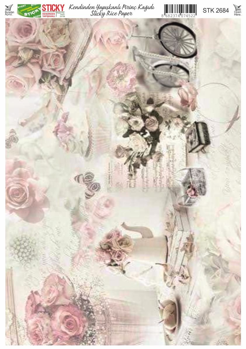 Scky Rice Paper (Self-Adhesive Rice Paper) It is printed on textured and thin paper that made from rice straw and is used for decoupage works. With its selfadhesive feature, it does not require glue. You can easily paste it on the area you want and apply painng, relief, foil and varnish on it. You can visit our web page for other Scky models