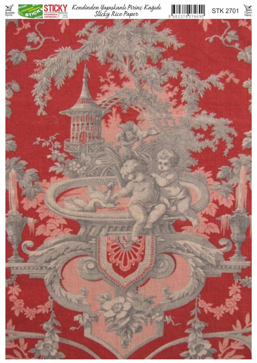 Scky Rice Paper (Self-Adhesive Rice Paper) It is printed on textured and thin paper that made from rice straw and is used for decoupage works. With its selfadhesive feature, it does not require glue. You can easily paste it on the area you want and apply painng, relief, foil and varnish on it. You can visit our web page for other Scky models