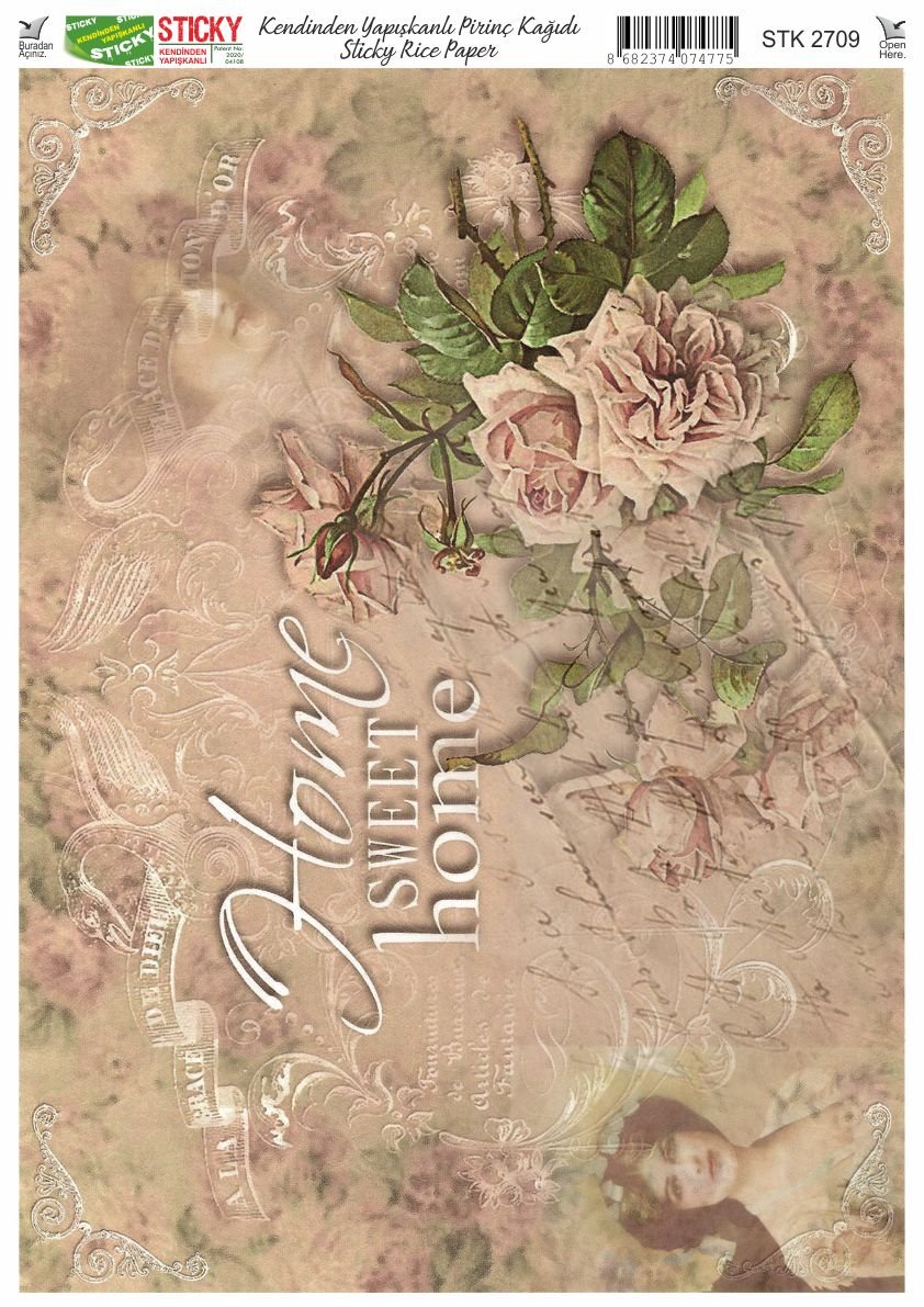 Scky Rice Paper (Self-Adhesive Rice Paper) It is printed on textured and thin paper that made from rice straw and is used for decoupage works. With its selfadhesive feature, it does not require glue. You can easily paste it on the area you want and apply painng, relief, foil and varnish on it. You can visit our web page for other Scky models
