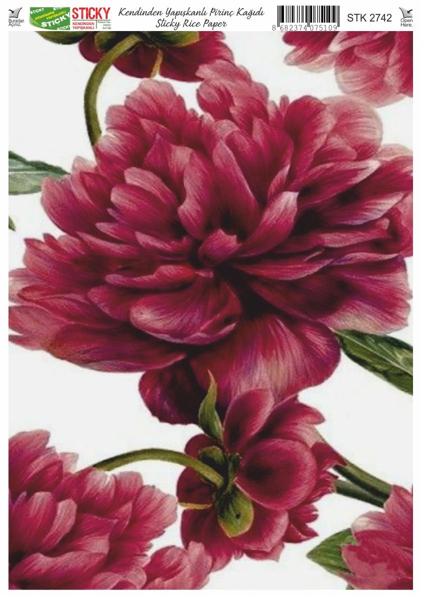 Scky Rice Paper (Self-Adhesive Rice Paper) It is printed on textured and thin paper that made from rice straw and is used for decoupage works. With its selfadhesive feature, it does not require glue. You can easily paste it on the area you want and apply painng, relief, foil and varnish on it. You can visit our web page for other Scky models