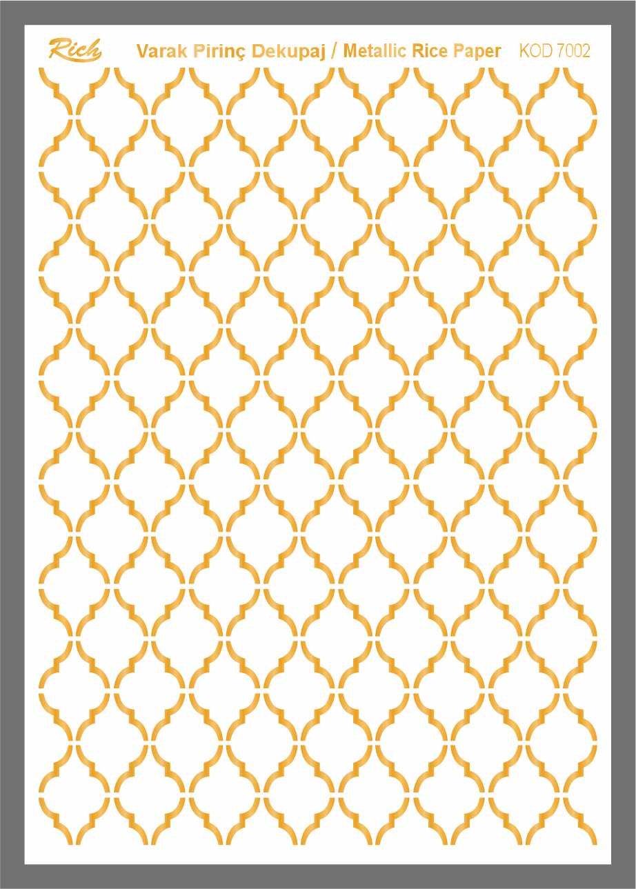 Paper designs made using metallic leaf foils are printed on very thin papers made from rice stalks. It is perfect for special decoupage works where metalized appearances are required. With Rich Magic Decoupage Glue, those can be easily adhered to the preferred surfaces, and Rich Water Based Varnishes can be applied to them.