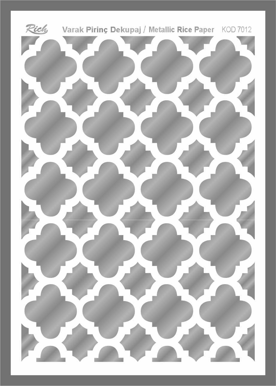 Paper designs made using metallic leaf foils are printed on very thin papers made from rice stalks. It is perfect for special decoupage works where metalized appearances are required. With Rich Magic Decoupage Glue, those can be easily adhered to the preferred surfaces, and Rich Water Based Varnishes can be applied to them.
