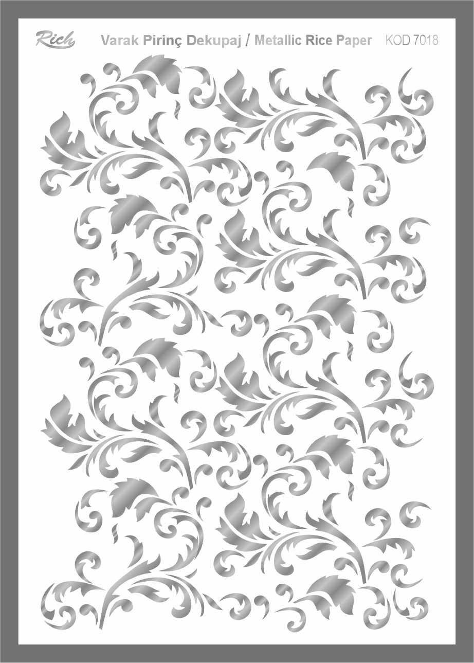 Paper designs made using metallic leaf foils are printed on very thin papers made from rice stalks. It is perfect for special decoupage works where metalized appearances are required. With Rich Magic Decoupage Glue, those can be easily adhered to the preferred surfaces, and Rich Water Based Varnishes can be applied to them.