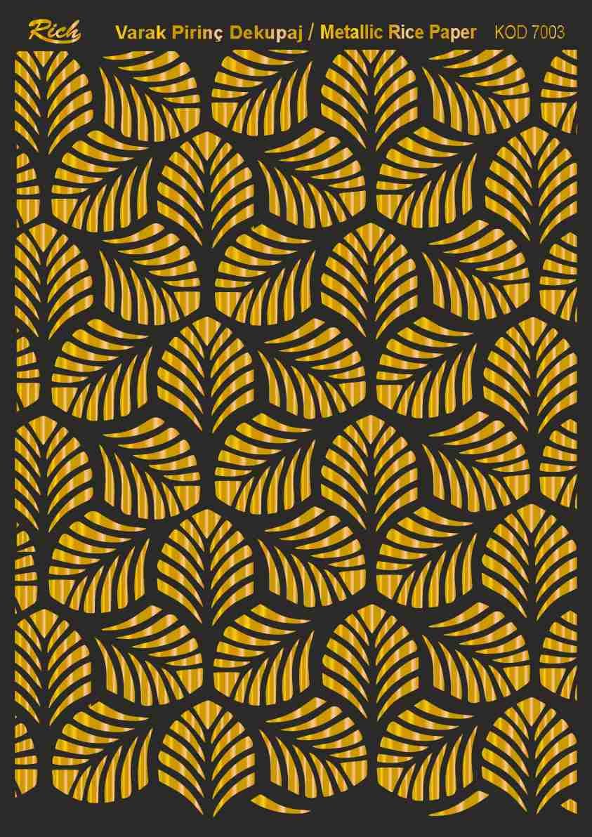 Paper designs made using metallic leaf foils are printed on very thin papers made from rice stalks. It is perfect for special decoupage works where metalized appearances are required. With Rich Magic Decoupage Glue, those can be easily adhered to the preferred surfaces, and Rich Water Based Varnishes can be applied to them.