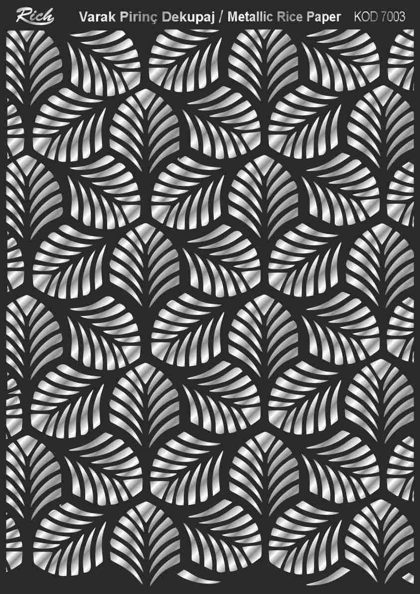 Paper designs made using metallic leaf foils are printed on very thin papers made from rice stalks. It is perfect for special decoupage works where metalized appearances are required. With Rich Magic Decoupage Glue, those can be easily adhered to the preferred surfaces, and Rich Water Based Varnishes can be applied to them.