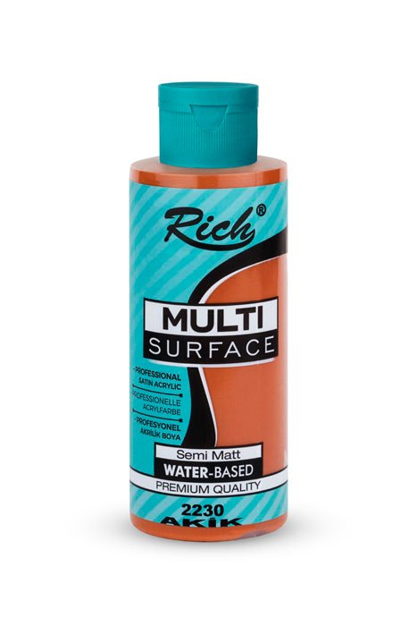 The Rich Multi-Surface series consist of water-based, odorless paints that can be applied to any surface for decorative purposes. They give a semi-matte appearance on the applied surface. The colors can be intermixed. They are used after dilution with water. The net appearance is achieved after an average of 3 coats depending on the surface. One should wait 24 hours after the 1st coat is painted on the surface. A wait period of 12 hours is sufficient between the other coats. Due to their dense composition, they can be applied both with rollers and brushes. When renovation your furniture, there is no need for sandpaper, surface preparation before the application, or applying another product. Along with its rich color range, it is available in 4 different volumes; namely 120cc/500cc/1250cc/2500cc.