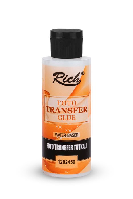 It is a product that allows the transfer of photos with high souvenir values and personal visuals perception hard surfaces. Photo transfer glue allows the paper thickness to be taken and to cover the surface like a thin film without damaging the photo. It is sufficient that the visual is photocopied on a colored or black-and-white paper. The colored side of the photocopy is covered with glue in 1 coat and adhered. After 24 hours, the paper is wetted and the excess thickness is removed. It is waterbased and is available in packagings of 120 cc and 250cc .
