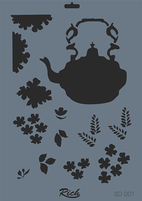 The 3D Stencil collecon is designed for wood and furniture decoraon. Helps to design the design your wooden products and furnitures according to the user’s liking. It is suitable for use for all paint and paste groups. Not easily broken and torn. Easily gets cleaned with warm water. Applying with Rich Stencil Spray on the vercal surfaces will prevent slipping and material overflow on your designs.