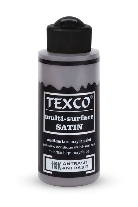 Texco Multi-Surface series consist of water-based, odorless paints that can be applied to any surface for decorative purposes. They give a semi-matte appearance on the applied surface. The colors can be intermixed. They are used after dilution with water. The net appearance is achieved after an average of 3-4 coats depending on the surface. One should wait 24 hours after the 1st coat is painted on the surface. A wait period of 12 hours is sufficient between the other coats. Due to their dense composition, they can be applied both with rollers and brushes. When renovation your furniture, there is no need for sandpaper, surface preparation before the application, or applying another product. . It has 57 color options with a volume of 110cc.