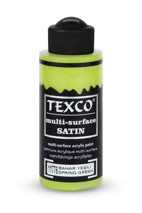 Texco Multi-Surface series consist of water-based, odorless paints that can be applied to any surface for decorative purposes. They give a semi-matte appearance on the applied surface. The colors can be intermixed. They are used after dilution with water. The net appearance is achieved after an average of 3-4 coats depending on the surface. One should wait 24 hours after the 1st coat is painted on the surface. A wait period of 12 hours is sufficient between the other coats. Due to their dense composition, they can be applied both with rollers and brushes. When renovation your furniture, there is no need for sandpaper, surface preparation before the application, or applying another product. . It has 57 color options with a volume of 110cc.
