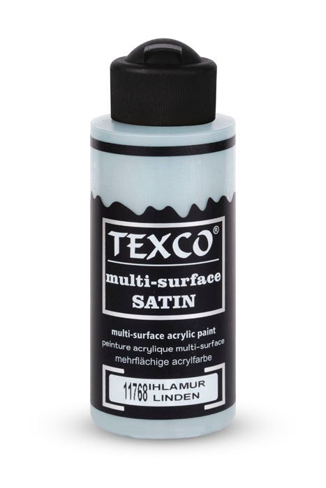Texco Multi-Surface series consist of water-based, odorless paints that can be applied to any surface for decorative purposes. They give a semi-matte appearance on the applied surface. The colors can be intermixed. They are used after dilution with water. The net appearance is achieved after an average of 3-4 coats depending on the surface. One should wait 24 hours after the 1st coat is painted on the surface. A wait period of 12 hours is sufficient between the other coats. Due to their dense composition, they can be applied both with rollers and brushes. When renovation your furniture, there is no need for sandpaper, surface preparation before the application, or applying another product. . It has 57 color options with a volume of 110cc.
