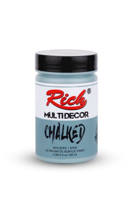 Rich Multi-Decor Chalked series are water-based, odorless paints that can be applied on every surface for decorative purposes. They give a silky, matte appearance on the applied surface. It is applied directly without dilution. It should be shaken for 1 min. before each use. The colors can be intermixed. Due to its high-pigment composition, it ensures a clarity in 2-3 coats at an average. It leaves no brush marks behind. It is suitable for application with rollers. When renovating your furniture with Multi-Decor Chalked paints, there is no need for sandpaper, surface preparation before the application, or applying another product. Along with its rich color range, it is available in 4 different volumes; namely 100cc/250cc/500cc/1250cc.