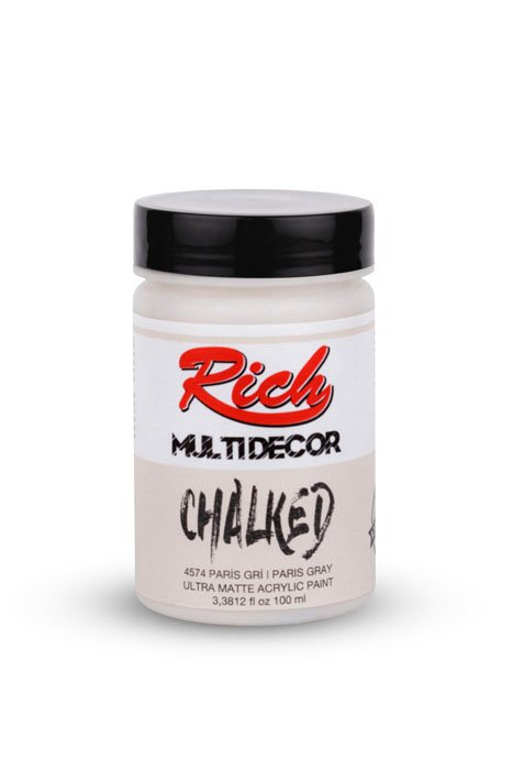 Rich Multi-Decor Chalked series are water-based, odorless paints that can be applied on every surface for decorative purposes. They give a silky, matte appearance on the applied surface. It is applied directly without dilution. It should be shaken for 1 min. before each use. The colors can be intermixed. Due to its high-pigment composition, it ensures a clarity in 2-3 coats at an average. It leaves no brush marks behind. It is suitable for application with rollers. When renovating your furniture with Multi-Decor Chalked paints, there is no need for sandpaper, surface preparation before the application, or applying another product. Along with its rich color range, it is available in 4 different volumes; namely 100cc/250cc/500cc/1250cc.