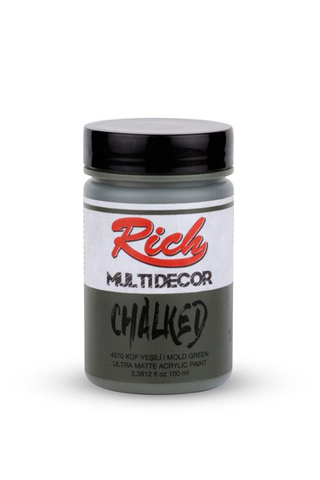 Rich Multi-Decor Chalked series are water-based, odorless paints that can be applied on every surface for decorative purposes. They give a silky, matte appearance on the applied surface. It is applied directly without dilution. It should be shaken for 1 min. before each use. The colors can be intermixed. Due to its high-pigment composition, it ensures a clarity in 2-3 coats at an average. It leaves no brush marks behind. It is suitable for application with rollers. When renovating your furniture with Multi-Decor Chalked paints, there is no need for sandpaper, surface preparation before the application, or applying another product. Along with its rich color range, it is available in 4 different volumes; namely 100cc/250cc/500cc/1250cc.