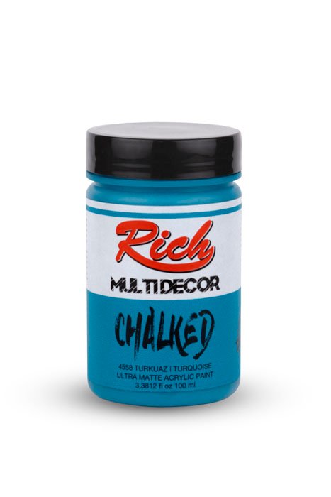 Rich Multi-Decor Chalked series are water-based, odorless paints that can be applied on every surface for decorative purposes. They give a silky, matte appearance on the applied surface. It is applied directly without dilution. It should be shaken for 1 min. before each use. The colors can be intermixed. Due to its high-pigment composition, it ensures a clarity in 2-3 coats at an average. It leaves no brush marks behind. It is suitable for application with rollers. When renovating your furniture with Multi-Decor Chalked paints, there is no need for sandpaper, surface preparation before the application, or applying another product. Along with its rich color range, it is available in 4 different volumes; namely 100cc/250cc/500cc/1250cc.