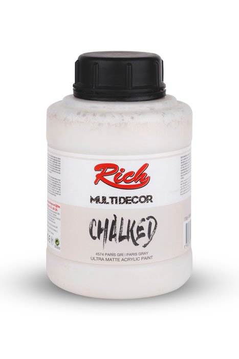Rich Multi-Decor Chalked series are water-based, odorless paints that can be applied on every surface for decorative purposes. They give a silky, matte appearance on the applied surface. It is applied directly without dilution. It should be shaken for 1 min. before each use. The colors can be intermixed. Due to its high-pigment composition, it ensures a clarity in 2-3 coats at an average. It leaves no brush marks behind. It is suitable for application with rollers. When renovating your furniture with Multi-Decor Chalked paints, there is no need for sandpaper, surface preparation before the application, or applying another product. Along with its rich color range, it is available in 4 different volumes; namely 100cc/250cc/500cc/1250cc.