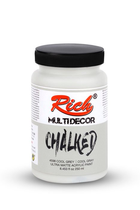 Rich Multi-Decor Chalked series are water-based, odorless paints that can be applied on every surface for decorative purposes. They give a silky, matte appearance on the applied surface. It is applied directly without dilution. It should be shaken for 1 min. before each use. The colors can be intermixed. Due to its high-pigment composition, it ensures a clarity in 2-3 coats at an average. It leaves no brush marks behind. It is suitable for application with rollers. When renovating your furniture with Multi-Decor Chalked paints, there is no need for sandpaper, surface preparation before the application, or applying another product. Along with its rich color range, it is available in 4 different volumes; namely 100cc/250cc/500cc/1250cc.