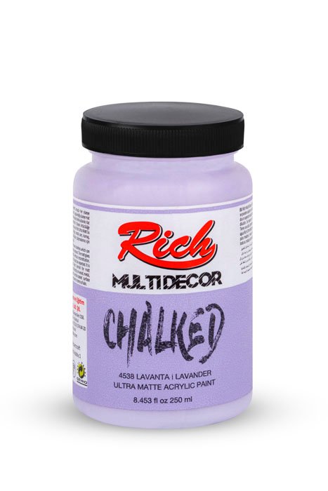 Rich Multi-Decor Chalked series are water-based, odorless paints that can be applied on every surface for decorative purposes. They give a silky, matte appearance on the applied surface. It is applied directly without dilution. It should be shaken for 1 min. before each use. The colors can be intermixed. Due to its high-pigment composition, it ensures a clarity in 2-3 coats at an average. It leaves no brush marks behind. It is suitable for application with rollers. When renovating your furniture with Multi-Decor Chalked paints, there is no need for sandpaper, surface preparation before the application, or applying another product. Along with its rich color range, it is available in 4 different volumes; namely 100cc/250cc/500cc/1250cc.