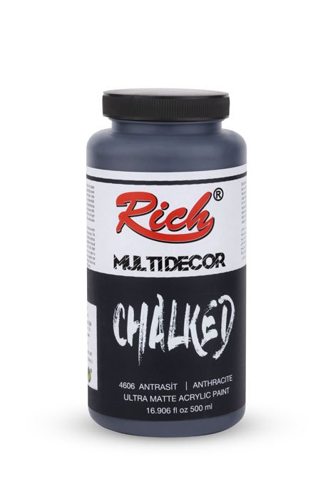 Rich Multi-Decor Chalked series are water-based, odorless paints that can be applied on every surface for decorative purposes. They give a silky, matte appearance on the applied surface. It is applied directly without dilution. It should be shaken for 1 min. before each use. The colors can be intermixed. Due to its high-pigment composition, it ensures a clarity in 2-3 coats at an average. It leaves no brush marks behind. It is suitable for application with rollers. When renovating your furniture with Multi-Decor Chalked paints, there is no need for sandpaper, surface preparation before the application, or applying another product. Along with its rich color range, it is available in 4 different volumes; namely 100cc/250cc/500cc/1250cc.
