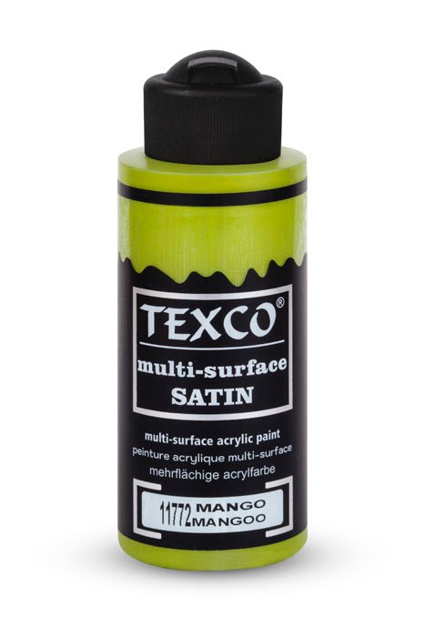 Texco Multi-Surface series consist of water-based, odorless paints that can be applied to any surface for decorative purposes. They give a semi-matte appearance on the applied surface. The colors can be intermixed. They are used after dilution with water. The net appearance is achieved after an average of 3-4 coats depending on the surface. One should wait 24 hours after the 1st coat is painted on the surface. A wait period of 12 hours is sufficient between the other coats. Due to their dense composition, they can be applied both with rollers and brushes. When renovation your furniture, there is no need for sandpaper, surface preparation before the application, or applying another product. . It has 57 color options with a volume of 110cc.