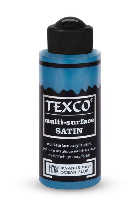 Texco Multi-Surface series consist of water-based, odorless paints that can be applied to any surface for decorative purposes. They give a semi-matte appearance on the applied surface. The colors can be intermixed. They are used after dilution with water. The net appearance is achieved after an average of 3-4 coats depending on the surface. One should wait 24 hours after the 1st coat is painted on the surface. A wait period of 12 hours is sufficient between the other coats. Due to their dense composition, they can be applied both with rollers and brushes. When renovation your furniture, there is no need for sandpaper, surface preparation before the application, or applying another product. . It has 57 color options with a volume of 110cc.