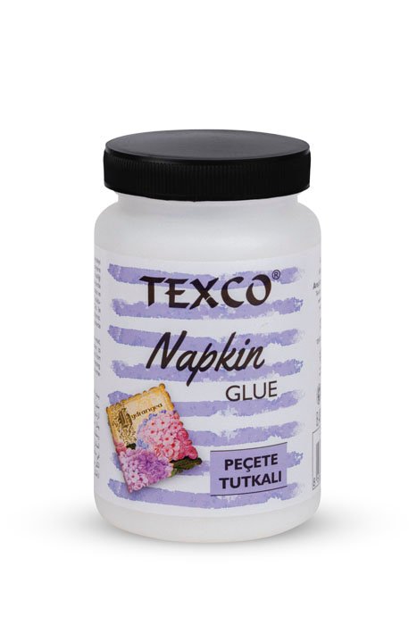 Texco Napkin Glue is a water-based glue that facilitates the easy adhesion of paper napkins without being creased or torn due to its specially formulated creamy composition. It does not leave glue marks on the applied surface. It can be applied by hand or with brush as desired. It complies with CE and EN71 norms.