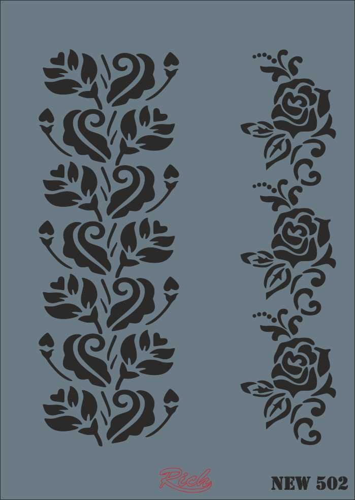 XL Series Stencil collecon is perfect for wood, fabric and furniture decoraons. Helps to design the wooden products, furnitures, clothes and fabric decoraons according to the user’s liking. It is suitable for use for all paint and paste groups. Not easily broken and torn. Easily gets cleaned with warm water. Applying with Rich Stencil Spray on the vercal surfaces will prevent slipping and material overflow on your designs.