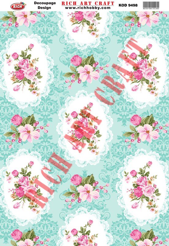 The designs that are printed on the special decoupage paper sheets are ideal to use in decoupage works. With Rich Magic Decoupage Glue, you can easily stick it to the surface you want and apply paints, relief pastes, foils, and varnishes on those. For other decoupage models, please visit our decoupage paper web pages.