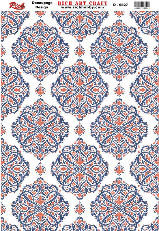 The designs that are printed on the special decoupage paper sheets are ideal to use in decoupage works. With Rich Magic Decoupage Glue, you can easily stick it to the surface you want and apply paints, relief pastes, foils, and varnishes on those. For other decoupage models, please visit our decoupage paper web pages.