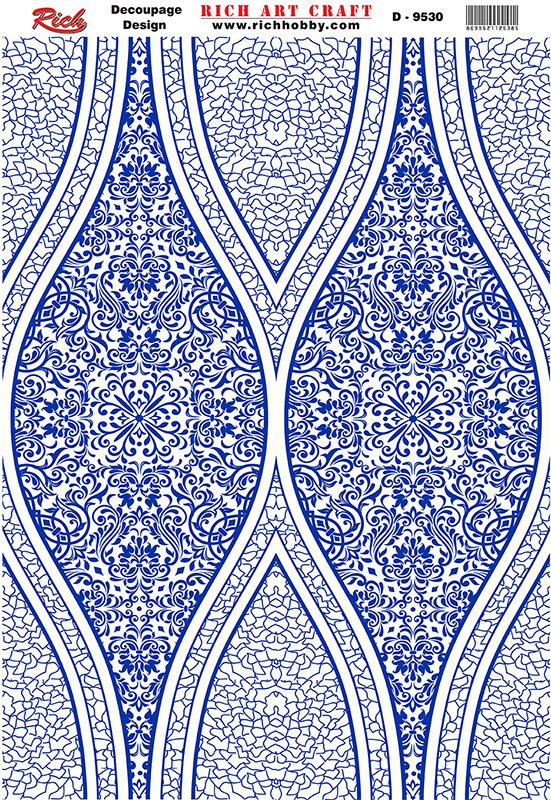 The designs that are printed on the special decoupage paper sheets are ideal to use in decoupage works. With Rich Magic Decoupage Glue, you can easily stick it to the surface you want and apply paints, relief pastes, foils, and varnishes on those. For other decoupage models, please visit our decoupage paper web pages.