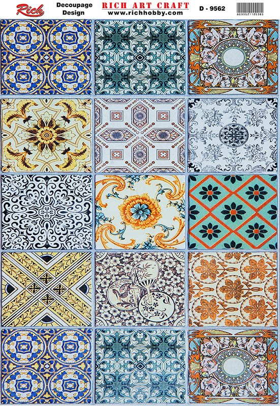 The designs that are printed on the special decoupage paper sheets are ideal to use in decoupage works. With Rich Magic Decoupage Glue, you can easily stick it to the surface you want and apply paints, relief pastes, foils, and varnishes on those. For other decoupage models, please visit our decoupage paper web pages.