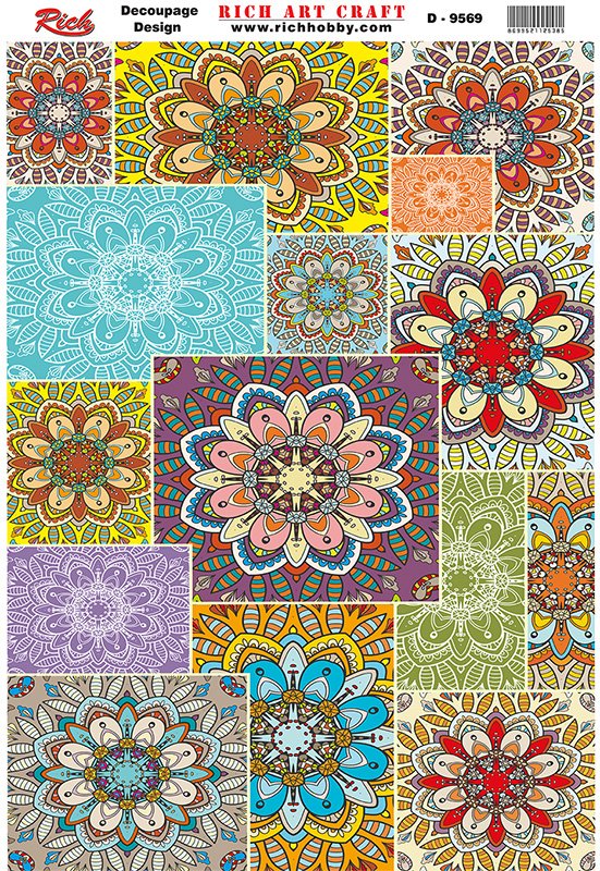 The designs that are printed on the special decoupage paper sheets are ideal to use in decoupage works. With Rich Magic Decoupage Glue, you can easily stick it to the surface you want and apply paints, relief pastes, foils, and varnishes on those. For other decoupage models, please visit our decoupage paper web pages.