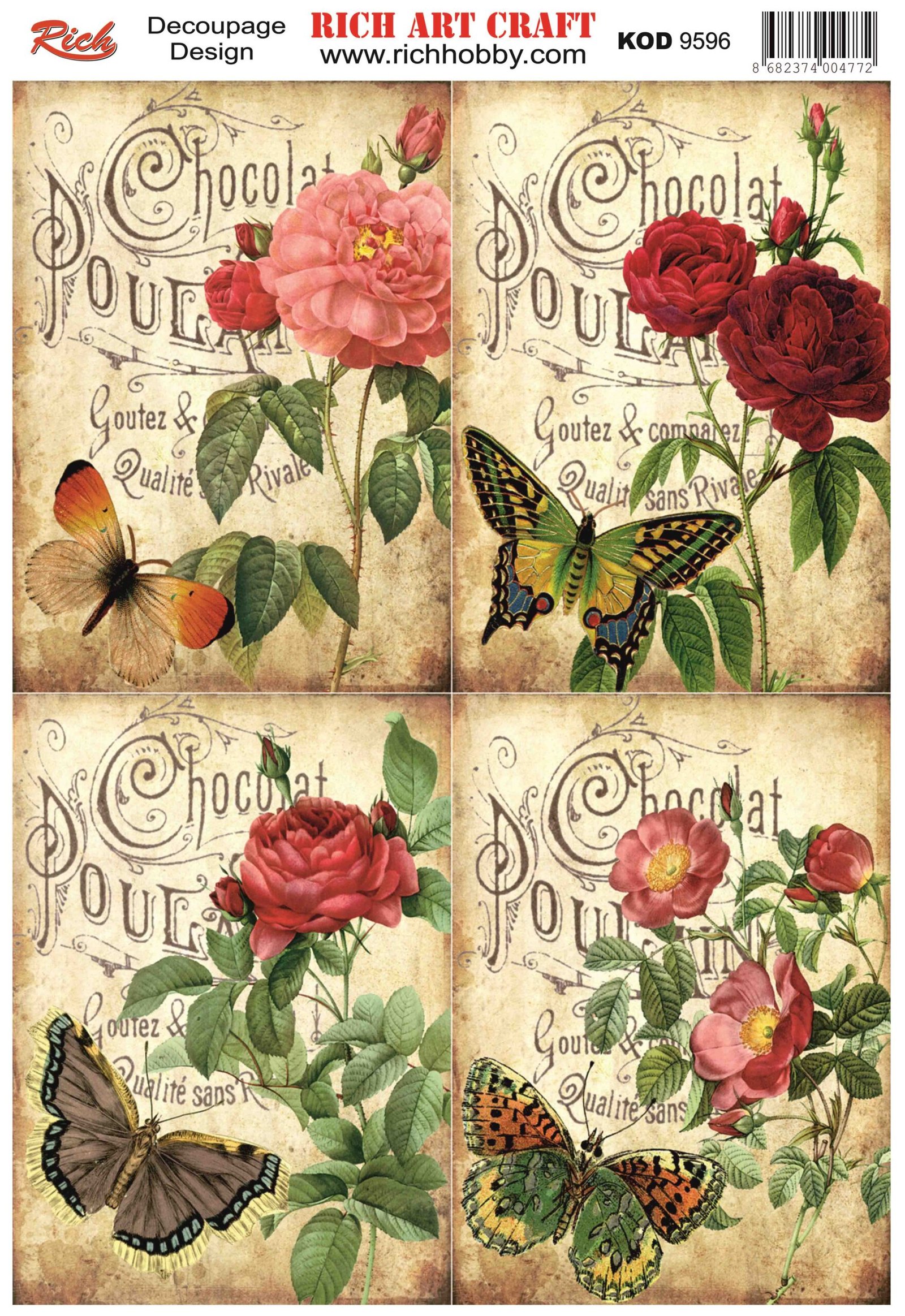The designs that are printed on the special decoupage paper sheets are ideal to use in decoupage works. With Rich Magic Decoupage Glue, you can easily stick it to the surface you want and apply paints, relief pastes, foils, and varnishes on those. For other decoupage models, please visit our decoupage paper web pages.