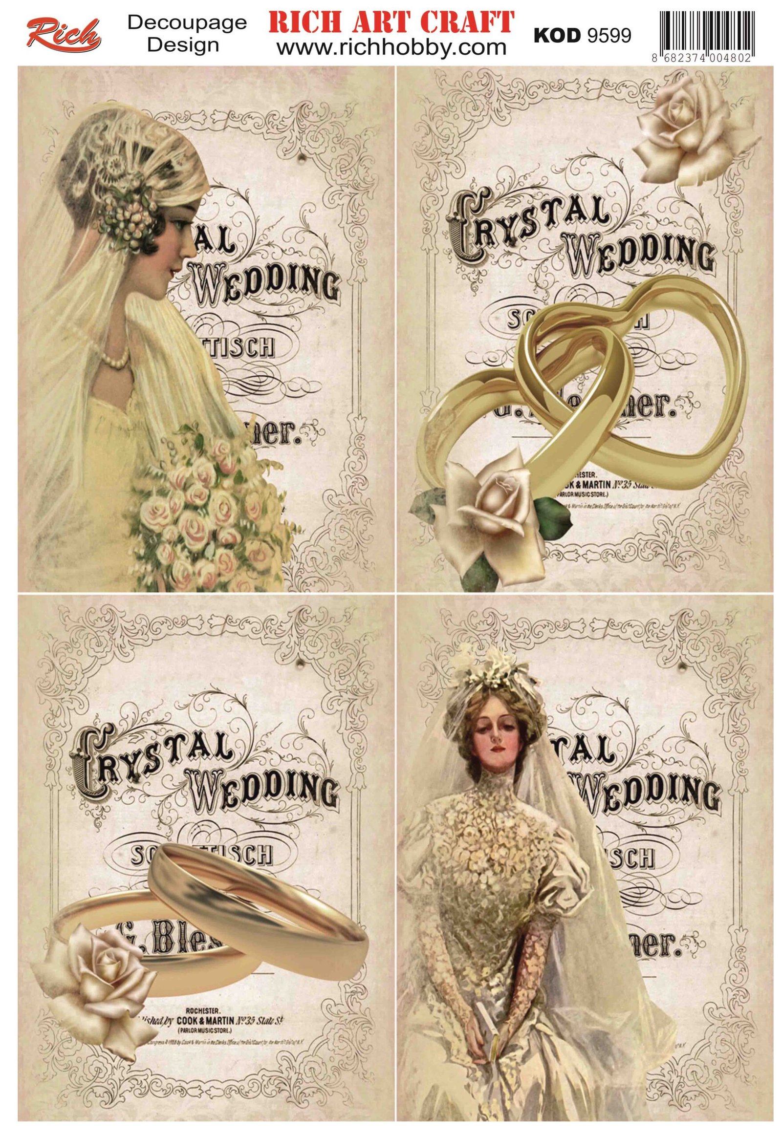The designs that are printed on the special decoupage paper sheets are ideal to use in decoupage works. With Rich Magic Decoupage Glue, you can easily stick it to the surface you want and apply paints, relief pastes, foils, and varnishes on those. For other decoupage models, please visit our decoupage paper web pages.