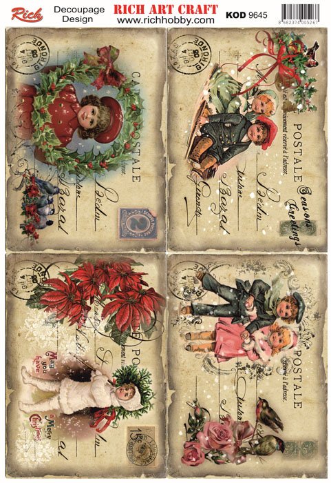 The designs that are printed on the special decoupage paper sheets are ideal to use in decoupage works. With Rich Magic Decoupage Glue, you can easily stick it to the surface you want and apply paints, relief pastes, foils, and varnishes on those. For other decoupage models, please visit our decoupage paper web pages.