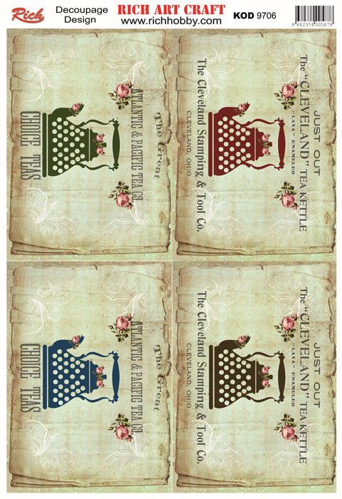 The designs that are printed on the special decoupage paper sheets are ideal to use in decoupage works. With Rich Magic Decoupage Glue, you can easily stick it to the surface you want and apply paints, relief pastes, foils, and varnishes on those. For other decoupage models, please visit our decoupage paper web pages.