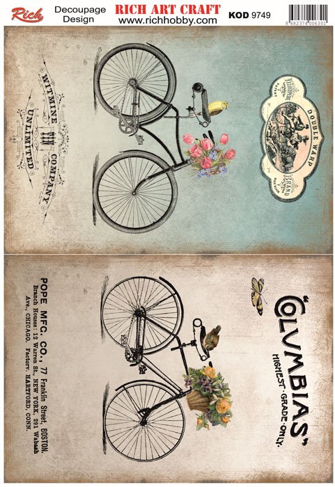 The designs that are printed on the special decoupage paper sheets are ideal to use in decoupage works. With Rich Magic Decoupage Glue, you can easily stick it to the surface you want and apply paints, relief pastes, foils, and varnishes on those. For other decoupage models, please visit our decoupage paper web pages.