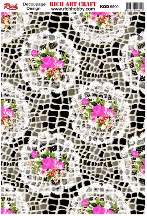 The designs that are printed on the special decoupage paper sheets are ideal to use in decoupage works. With Rich Magic Decoupage Glue, you can easily stick it to the surface you want and apply paints, relief pastes, foils, and varnishes on those. For other decoupage models, please visit our decoupage paper web pages.
