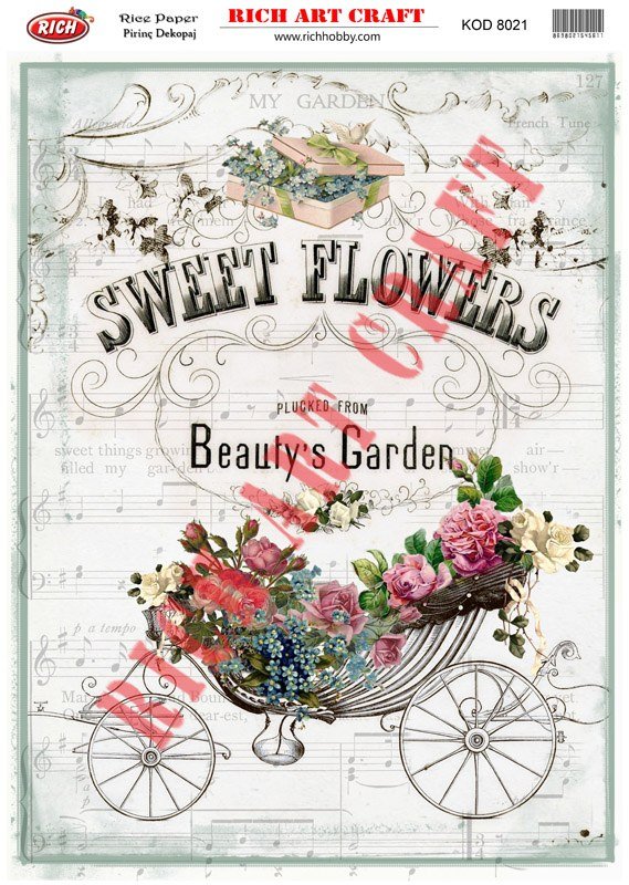 The designs that are printed on the special decoupage paper sheets are ideal to use in decoupage works. With Rich Magic Decoupage Glue, you can easily stick it to the surface you want and apply paints, relief pastes, foils, and varnishes on those. For other decoupage models, please visit our decoupage paper web pages.