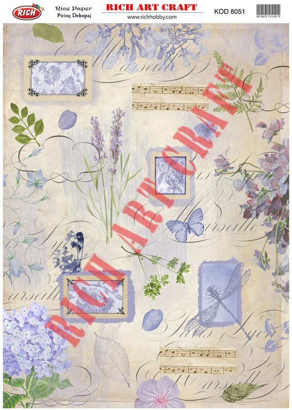 The designs that are printed on the special decoupage paper sheets are ideal to use in decoupage works. With Rich Magic Decoupage Glue, you can easily stick it to the surface you want and apply paints, relief pastes, foils, and varnishes on those. For other decoupage models, please visit our decoupage paper web pages.