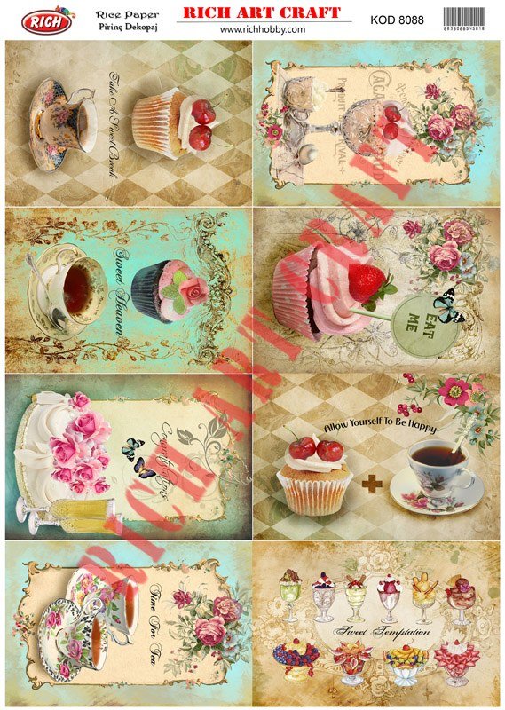 The designs that are printed on the special decoupage paper sheets are ideal to use in decoupage works. With Rich Magic Decoupage Glue, you can easily stick it to the surface you want and apply paints, relief pastes, foils, and varnishes on those. For other decoupage models, please visit our decoupage paper web pages.
