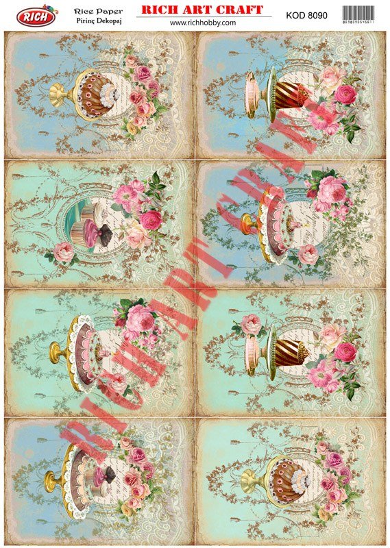 The designs that are printed on the special decoupage paper sheets are ideal to use in decoupage works. With Rich Magic Decoupage Glue, you can easily stick it to the surface you want and apply paints, relief pastes, foils, and varnishes on those. For other decoupage models, please visit our decoupage paper web pages.